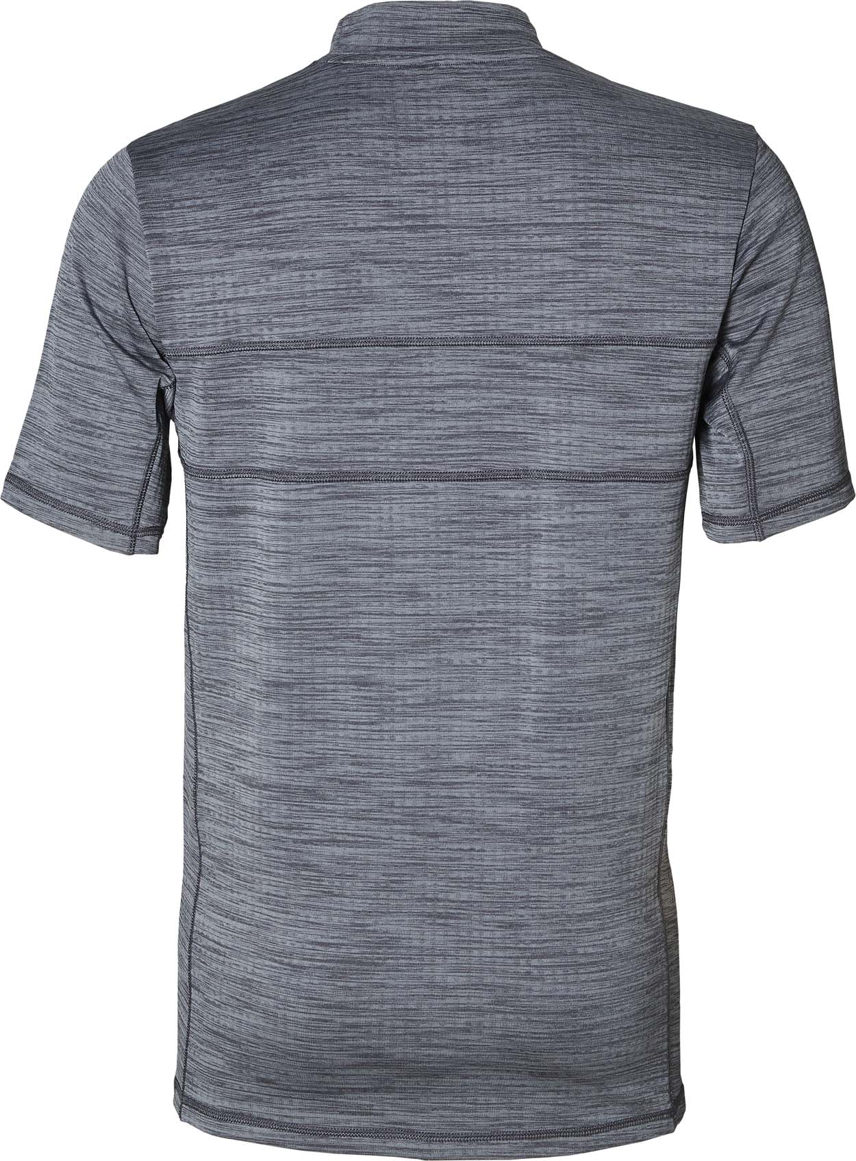 Eng anliegend / Feuchtigkeitstransportierendes Material / Mit guter Ventilation und schnell trocknend / Innenseite mit weicher noppigen Struktur / Weiter Ausschnitt / Flatlock-Nähte / Melange-Gewebe / OEKO-TEX® zertifiziert.