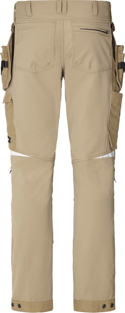 Stretch-Material auf kompletter Vorder- und Rückseite / 2 CORDURA®-verstärkte abnehmbare, lose hängende Außentaschen - mit 3 kleineren Taschen und Werkzeugschlaufen - Mit Platz für Werkzeuge für Rechts- und Linkshänder/ 2 Seitentaschen / 2 Gesäßtaschen - eine mit Reißverschluss / Doppelte CORDURA®-verstärkte Zollstocktasche mit Stifttasche / Multifunktionale Beintasche mit Reißverschluss und Belüftungsöffnung innen / Tasche auf der linken Seite mit Druckknöpfen / Ergonomisch geformte Hosenbeine / CORDURA®-verstärkte Knietaschen, mit Öffnung außen, für höhenverstellbare Kniepolster, mit kleinem Reißverschluss für eine Belüftungsöffnung / Reißverschluss in Kontrastfarbe / Reflektierende Details / CORDURA®-verstärkte Beinabschlüsse, mit Druckknopf verstellbar / Beinabschluss vorne länger, damit kein Schmutz in die Schuhe fallen kann / Geprüft gemäß EN 14404 mit Kniepolster 127440.