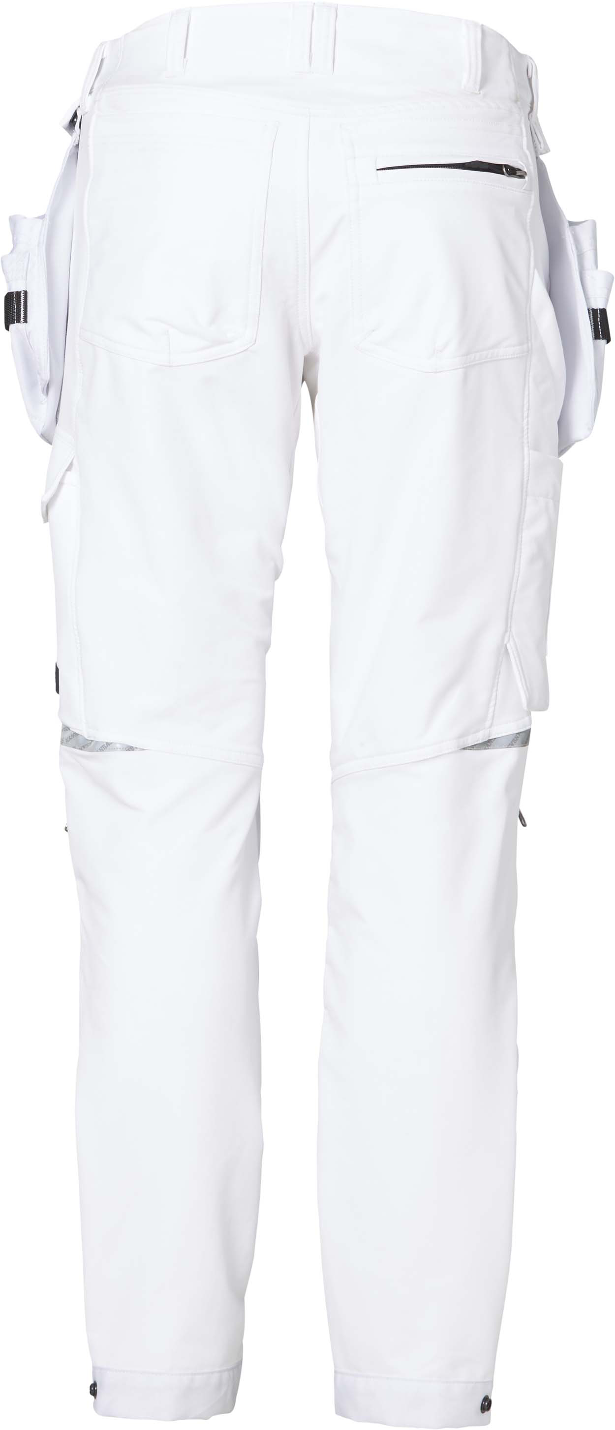 Stretch-Material auf kompletter Vorder- und Rückseite / 2 CORDURA®-verstärkte abnehmbare, lose hängende Außentaschen - mit 3 kleineren Taschen und Werkzeugschlaufen - Mit Platz für Werkzeuge für Rechts- und Linkshänder/ 2 Seitentaschen / 2 Gesäßtaschen - eine mit Reißverschluss / Doppelte CORDURA®-verstärkte Zollstocktasche mit Stifttasche / Multifunktionale Beintasche mit Reißverschluss und Belüftungsöffnung innen / Tasche auf der linken Seite mit Druckknöpfen / Ergonomisch geformte Hosenbeine / CORDURA®-verstärkte Knietaschen, mit Öffnung außen, für höhenverstellbare Kniepolster, mit kleinem Reißverschluss für eine Belüftungsöffnung / Reißverschluss in Kontrastfarbe / Reflektierende Details / CORDURA®-verstärkte Beinabschlüsse, mit Druckknopf verstellbar / Beinabschluss vorne länger, damit kein Schmutz in die Schuhe fallen kann / Geprüft gemäß EN 14404 mit Kniepolster 127440.