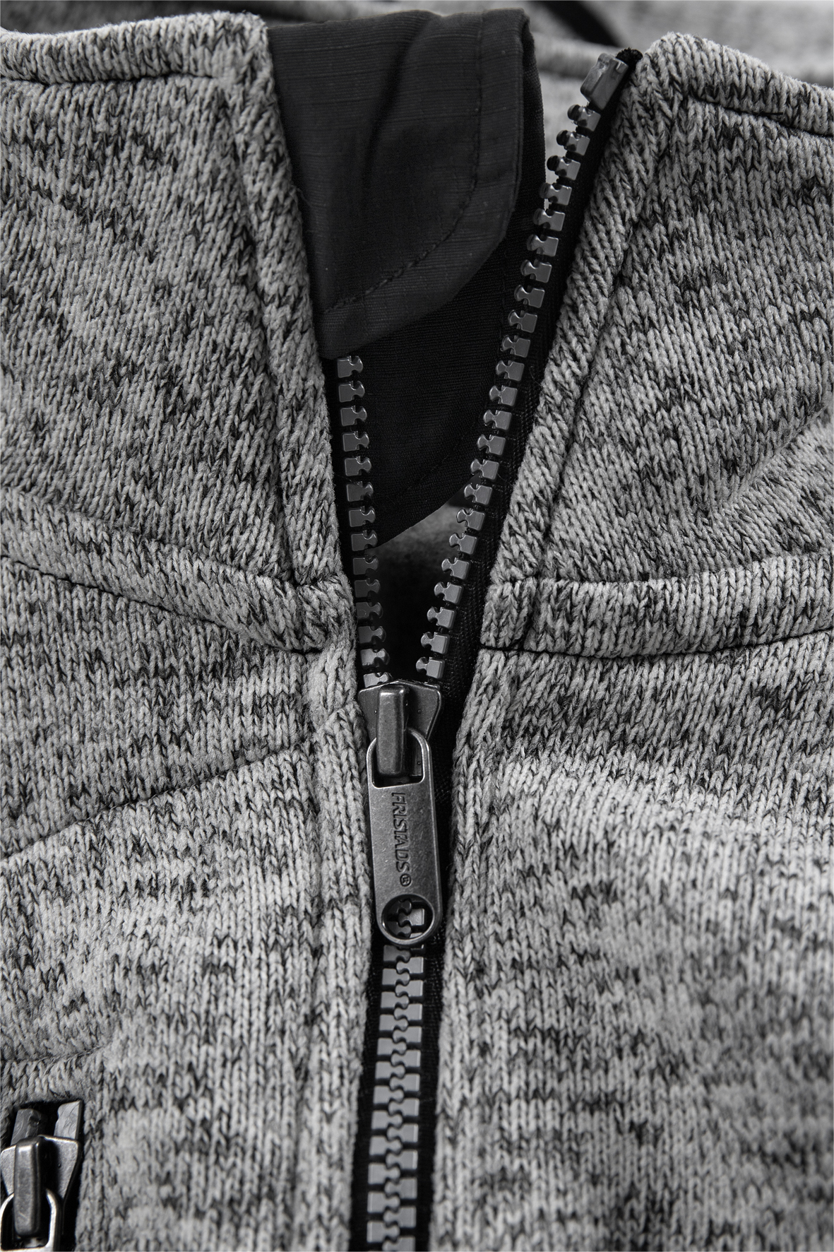 Melange-Material / Aufgeraute Innenseite / Flatlock-Nähte / Schultern und Ärmeln mit Nylon (mit Ripstop) verstärkt / Durchgehender Reißverschluss vorne / Rechte Brusttasche mit Reißverschluss, linke Seite bietet Platz für Logo / 2 Vordertaschen mit Reißverschluss, mit Nieten verstärkt / Reflektierende Details am rechten Ärmel und Unterkante hinten.