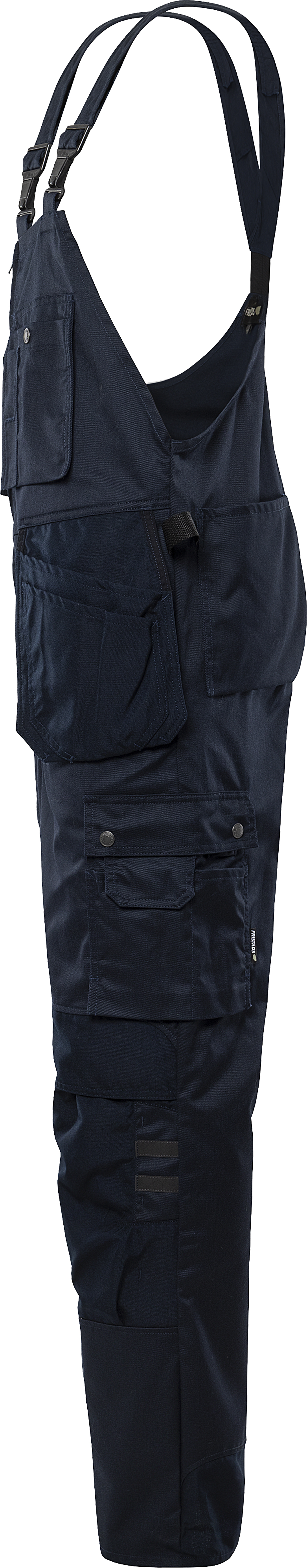 Teilweise rezykliertes Material / Mechanischer Stretch / Verstellbare Hosenträger mit elastischem Bereich / Zweiwege-Reißverschluss / 2 lose hängende Brusttaschen mit Druckknopfverschluss, eine mit Stifttasche / 2 CORDURA®-verstärkte Balgtaschen hinten / Schlaufe für Ausweis oder Schlüssel vorne / Doppelt verstärkte Schrittnaht / Hammerschlaufe auf beiden Seiten / Rechte Beintasche mit Zollstocktasche, Knopf und Schlaufe für Messerscheide und Stifttasche / Linke Beintasche mit Druckknopfverschluss, Handytasche und extra Tasche mit Schlaufe für Ausweishalter / CORDURA®-verstärkte Knietaschen mit Öffnung von oben / Höhenverstellung für Knieschoner in Knietasche / CORDURA®-verstärkte Beinabschlüsse / Reflektierende Details an den Knien / Zugelassen nach EN 14404 zusammen mit Knieschoner 124292 / OEKO-TEX® zertifiziert.