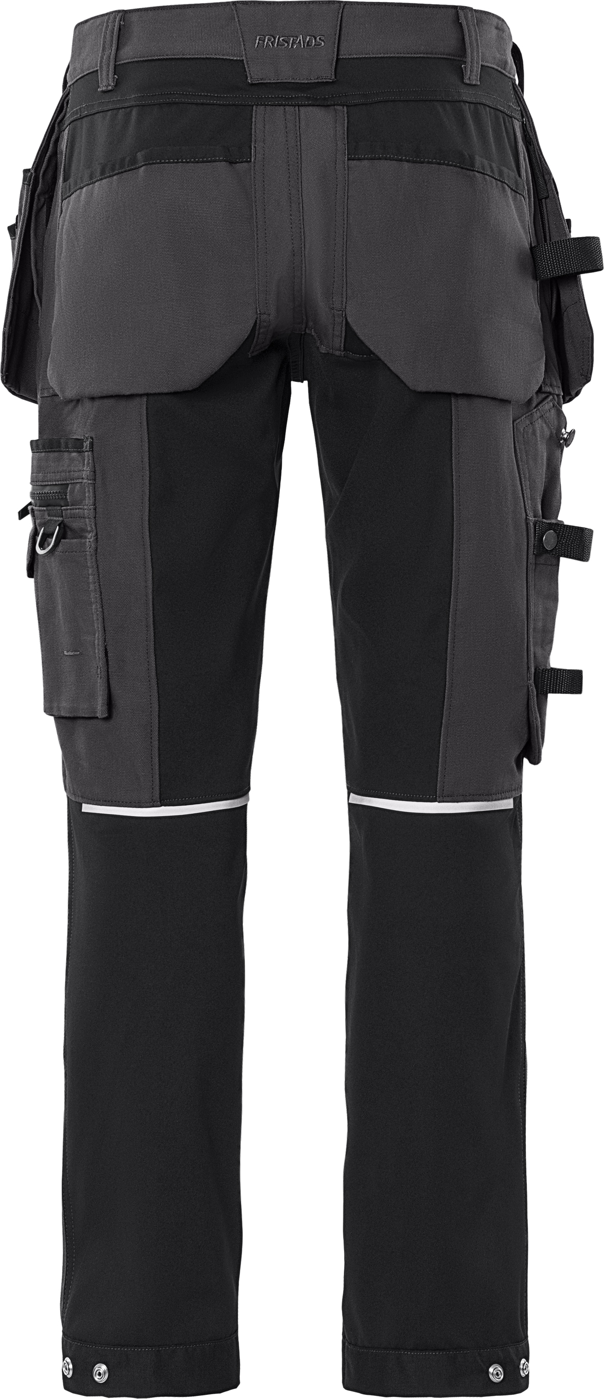 Teilweise recyceltes Material / Mit EPD (Environmental Product Declaration) / Große 4-Wege-Stretcheinsätze vorne, hinten und an den Beinen / 2 CORDURA®-verstärkte, lose hängende Taschen, eine mit 2 Taschen, davon eine mit Reißverschluss, eine mit 3 kleineren Taschen und Werkzeugschlaufen / 2 Vordertaschen / 2 Seitentaschen, eine mit Reißverschluss / 2 CORDURA®-verstärkte Gesäßtaschen mit losem Boden / D-Ring unter der lose hängenden Tasche / Doppelt verstärkte Schrittnaht / Hammerschlaufe / CORDURA®-verstärkte Zollstocktasche mit Werkzeugfach, Stifttasche, Knopf und Schlaufe für Messerscheide / Große Beintasche mit Druckknopfverschluss, wasserdichte Reißverschlusstasche, Handytasche und extra Tasche mit D-Ring für Ausweishalter / CORDURA®-verstärkte Knietaschen mit Öffnung von oben / Höhenverstellung für Knieschoner in Knietasche / CORDURA®-verstärkter Beinabschluss, verstellbar mit Druckknopfverschluss / Reflektierende Details an der Beinrückseite / Zugelassen nach EN 14404 zusammen mit Knieschoner 124292 / OEKO-TEX® zertifiziert / EPD Registrierungsnummer 8319 bei environdec.com