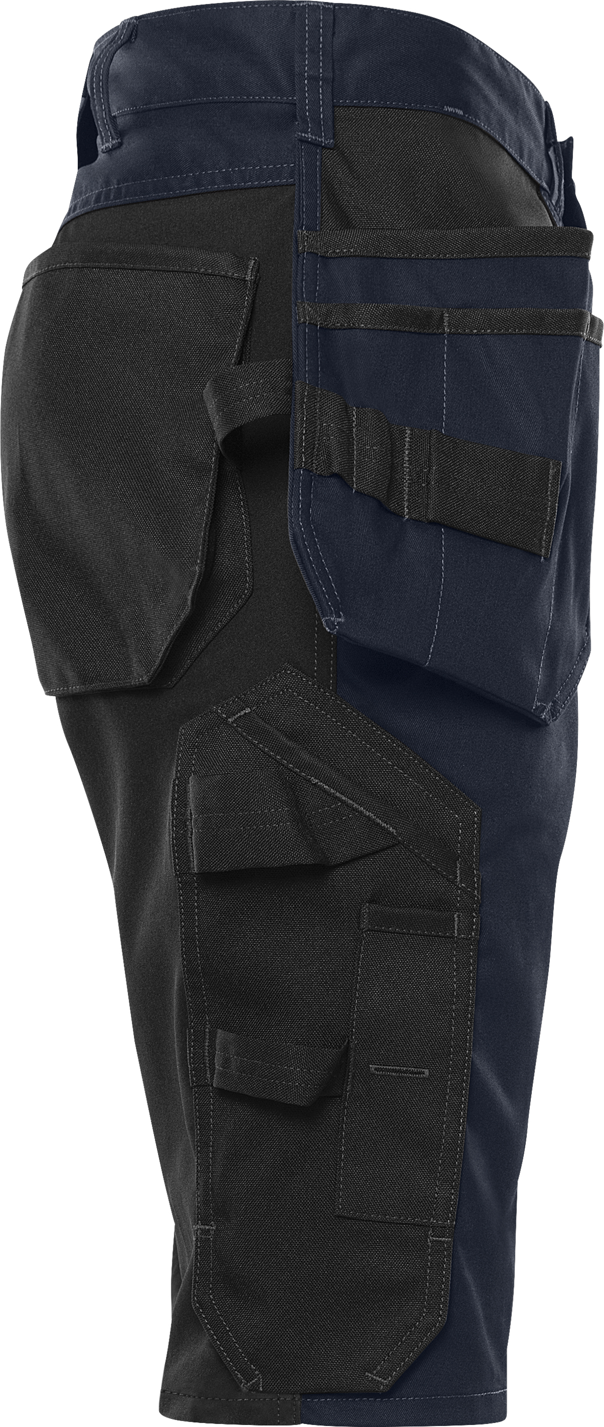 Teilweise recyceltes Material / Mechanischer Stretch / Große 4-Wege-Stretcheinsätze am Rücken und im Schritt / 2 lose hängende Taschen, vollständig mit strapazierfähigerem Material gefüttert - eine mit 2 Taschen, davon eine mit Reißverschluss, eine mit 3 kleineren Taschen und Werkzeugschlaufen / 2 Vordertaschen / 2 Gesäßtaschen aus strapazierfähigerem Material / Zusätzliche Schlaufen für Ausweis oder Schlüssel an der Vorderseite / Doppelt verstärkte Schrittnaht / Hammerschlaufe / Zollstocktasche aus strapazierfähigerem Material mit Stifttasche und verdecktem Knopf und Schlaufe für Taschenmesser / Große Beintasche aus strapazierfähigerem Material mit Reißverschlusstasche, auch für Zollstock geeignet / OEKO-TEX® zertifiziert.