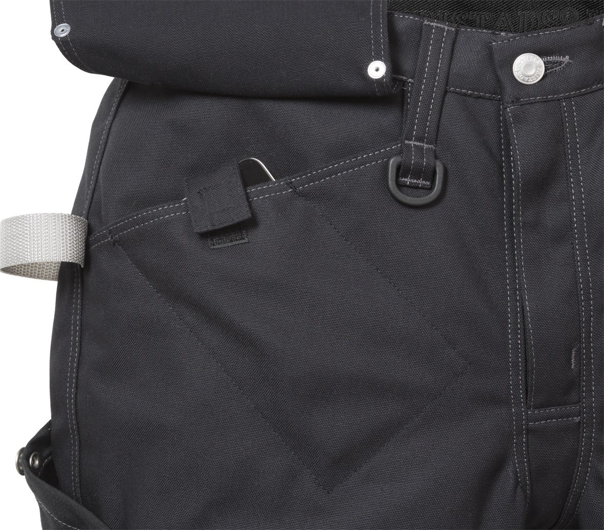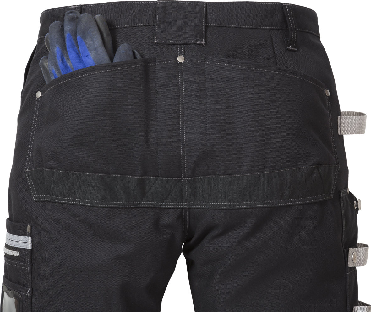 2 CORDURA®-verstärkte lose hängende Außentaschen - eine mit Reißverschlusstasche, die andere mit 3 kleineren Taschen und Werkzeugschlaufe / 2 Vordertaschen - eine mit Handytasche / 2 CORDURA®-verstärkte abgeschrägte Gesäßtaschen / Doppelt verstärkte Schrittnaht / Rechte Beintasche mit Stifthalter, Knopf und Schlaufe für ein Arbeitsmesser sowie CORDURA®-verstärkter Zollstocktasche / Multifunktionale linke Beintasche mit Handytasche, Ausweistasche, Reißverschlusstasche sowie großer Innentasche mit Druckknopf / Taschen mit Metallnietenverstärkung an allen besonders beanspruchten Stellen / D-Ring / Ergonomisch geformte Knie / CORDURA®-verstärkte Knietaschen mit Öffnung innen für höhenverstellbare Kniepolster / CORDURA®-verstärkte und mit Druckknöpfen verstellbare Beinabschlüsse / Kontrastnähte / Reflexpaspelierung an den Beinabschlüssen / Geprüft und zugelassen gemäß EN 14404 (in Kombination mit Kniepolster 124292) / OEKO-TEX® zertifiziert.