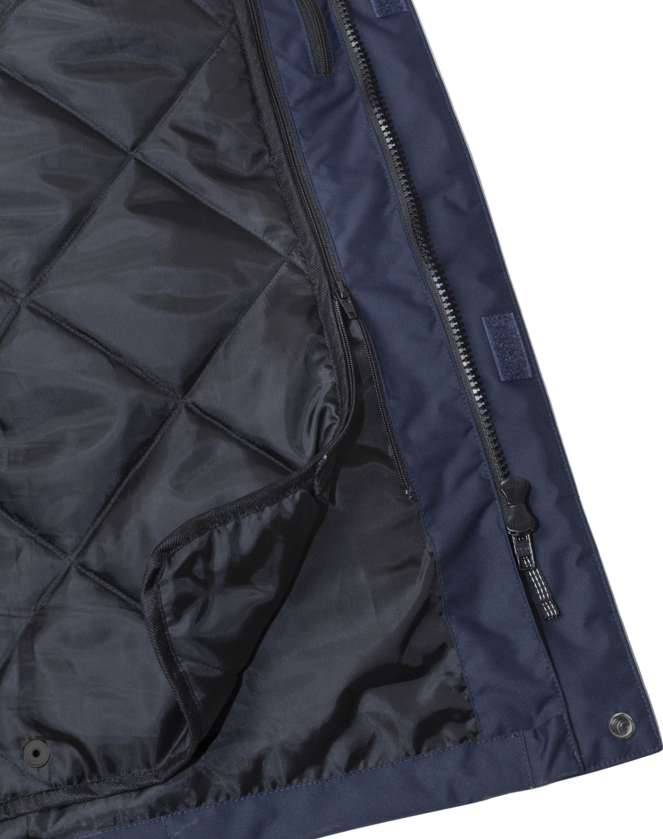 Airtech® wind- und wasserdicht, atmungsaktiv / Herausnehmbares Steppfutter / Abnehmbare, verstellbare gefütterte Kapuze / Kragen mit Fleece-Futter / Über die Schulter führende Reflexstreifen / Verdeckter 2-Wege-Reißverschluss mit Druckknopfleiste bis zum oberen Kragenrand / 2 Brusttaschen mit Reißverschluss / ID-Kartentasche / Kartentasche mit Handytasche (innen), von außen zugänglich / 2 geräumige Vordertaschen mit Patte und verdecktem Druckknopfverschluss / 2 Fleece-gefütterte Einschubtaschen / Schlaufe für Mikrofon (innen) / 2 Innentaschen mit Reißverschluss / Verstellbare Taille / Elastische Ärmelinnenbündchen mit Daumenschlaufen / Verstellbare Armabschlüsse / Reißverschluss im Futter ermöglicht Stickereien und Wärmetransfers / Wassersäule 10.000 mm / Geprüft und zugelassen gemäß EN ISO 20471 Klasse 3, EN 343 Klasse 3/3 und EN 342 / Industriewäsche geeignet gemäß ISO 15797.