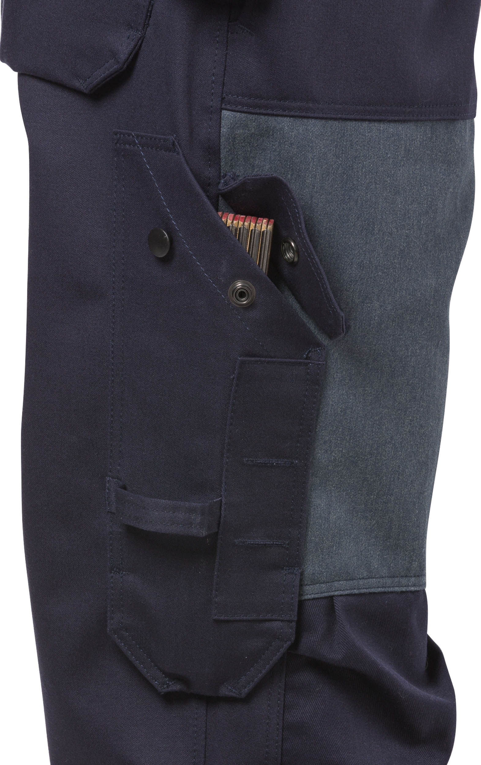 - 2 CORDURA®-verstärkte Gesäßtaschen mit Patte und verdecktem Druckknopfverschluss