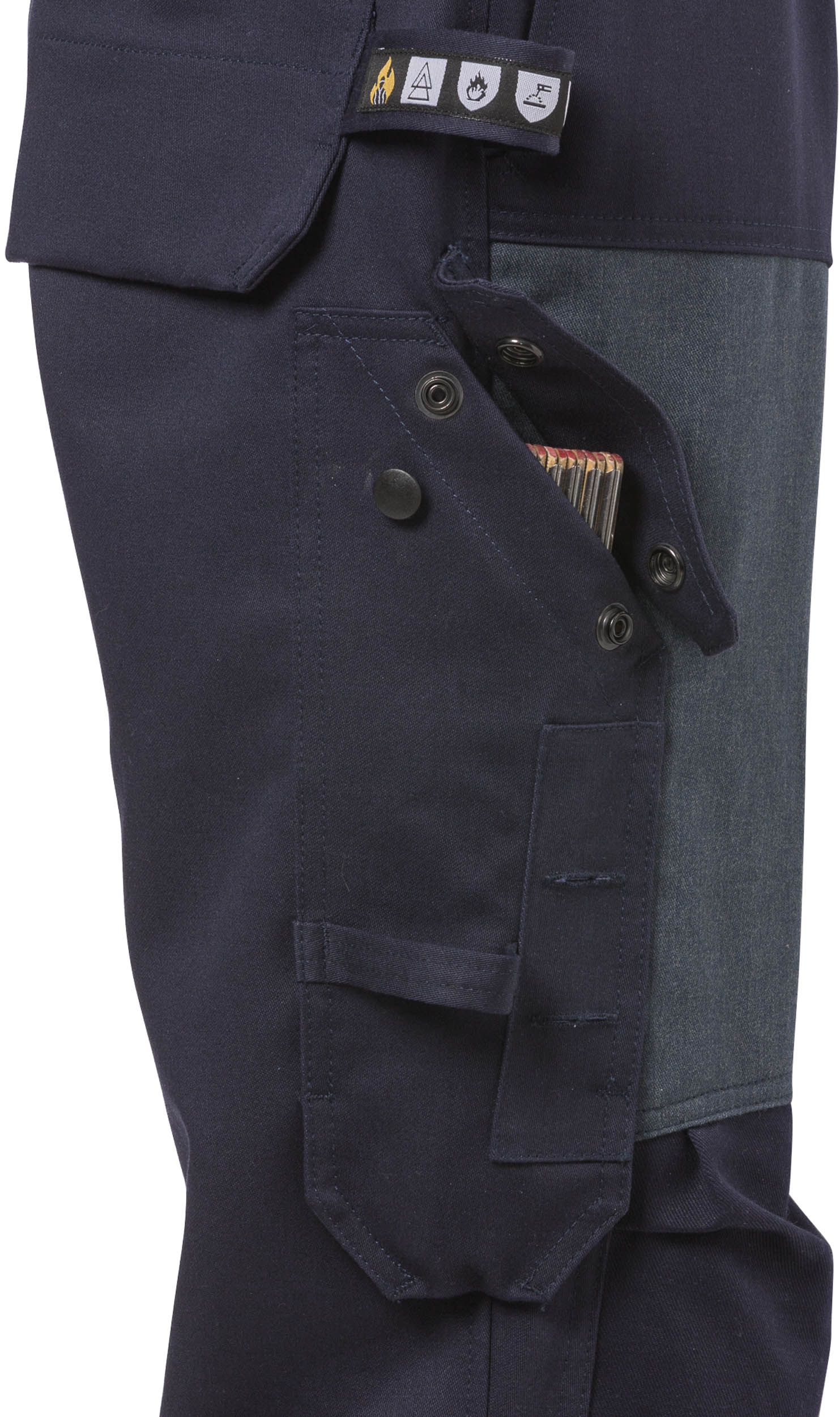 - Geprüft und zugelassen gemäß EN 61482-1-2 Klasse 1, EN 61482-1-1 ATPV: 10,6 cal/cm² HAF: 80,4 %, EN ISO 11612 A1 B1 C1 E2 F1, EN ISO 11611 A1 Klasse 1, EN 1149-5, EN ISO 20471 Klasse 1 und EN 14404 (in Kombination mit Kniepolster 124292)