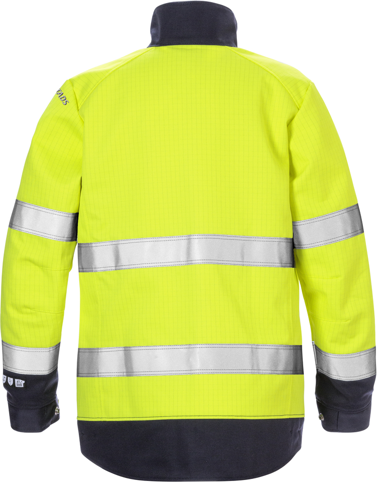 Verdeckter Reißverschluss mit Druckknopfleiste bis zum oberen Kragenrand / 2 geräumige Brusttaschen mit Patte und verdecktem Druckknopfverschluss - eine mit D-Ring / 2 Vordertaschen mit verdecktem Druckknopfverschluss / Innentasche mit Knopf und Handytasche mit Patte und Klettverschluss / Verstellbare Taille, mit Knöpfen / Verstellbare Armabschlüsse, mit Druckknopfverschluss / Verlängerte Rückenpartie / Geprüft und zugelassen gemäß EN 61482-1-2 Klasse 1, EN 61482-1-1 ATPV: 10,6 cal/cm² HAF: 80,4 %, EN ISO 11612 A1 B1 C1 E2 F1, EN ISO 11611 A1 Klasse 1, EN 1149-5 und EN ISO 20471 Klasse 2 (Gr. XS-S) und Klasse 3 (Gr. M-3XL) / Diverse Mehrlagen-Zertifizierungen vorhanden / Industriewäsche geeignet gemäß ISO 15797 / OEKO-TEX® zertifiziert.