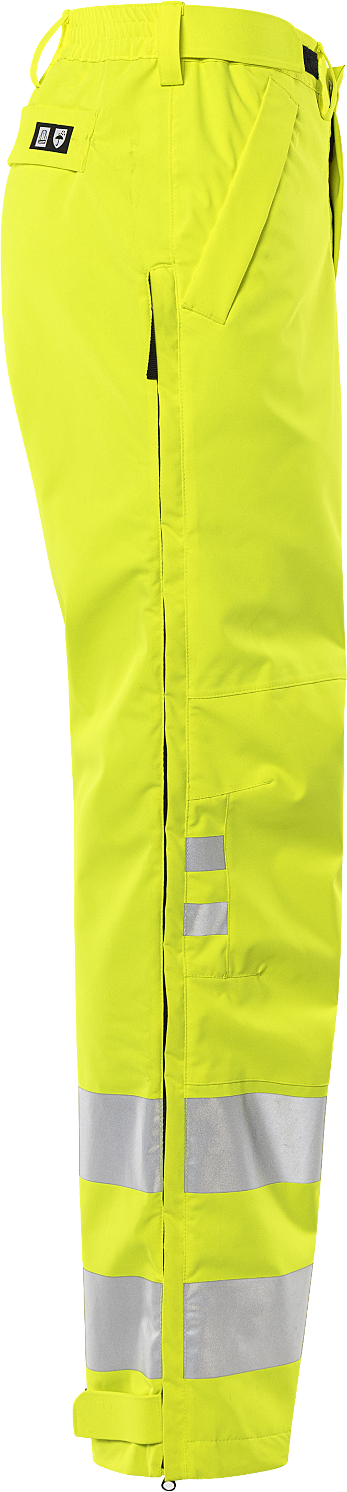 Recyceltes Material / Mechanischer Stretch / Wasserdicht, winddicht und atmungsaktiv / Verschweißte Nähte / Verstellbarer Bund mit Klettverschluss, seitlichen Gummizügen und Gürtelschlaufen / Hosenschlitz mit Reißverschluss / Doppelt verstärkte Schrittnaht / 2 Vordertaschen mit verdeckter Öffnung / Gesäßtasche mit verdecktem Reißverschluss / Vorgeformte Knie aus doppeltem Gewebe / Verdeckte 2-Wege-Reißverschlüsse an der Beinaußenseite bis zu den Vordertaschen, mit Innenleiste / Verstellbare Beinabschlüsse mit Klettverschluss / Verdeckter Stiefelhaken / Wassersäule 10.000 mm / RET <15 / Geprüft nach EN ISO 20471 Klasse 2 und EN 343 Klasse 4/4 / Geprüft nach 5 Wäschen / OEKO-TEX® zertifiziert.