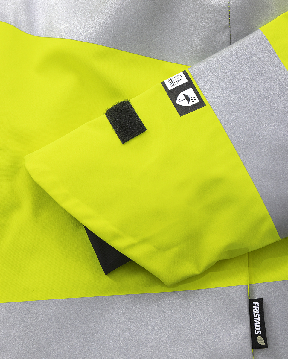Recyceltes Material / Mechanischer Stretch / Wasserdicht, winddicht und atmungsaktiv / Verschweißte Nähte / Abnehmbare und verstellbare Kapuze mit verstärktem Schirm / Fleecegefütterter Kragen / Durchgehender, wasserabweisender 2-Wege-Frontreißverschluss mit Innenleiste / Brusttasche mit verdecktem, vertikalem Reißverschluss / Fronttaschen mit Reißverschluss / Netzinnentasche mit elastischer Kante / Vorgeformte Ärmel / Verstellbarer Ärmelabschluss mit abgerundeter Oberseite / Elastische Innenmanschette mit Daumengriff / Verstellbarer Kordelzug am unteren Ende / Verlängerter Rücken / Reißverschluss im Futter für den Transfer / Waterpillar 10, 000 mm / RET <15 / Geprüft nach EN ISO 20471 Klasse 3 und EN 343 Klasse 4/4 / Geprüft nach 5 Wäschen / OEKO-TEX® zertifiziert.