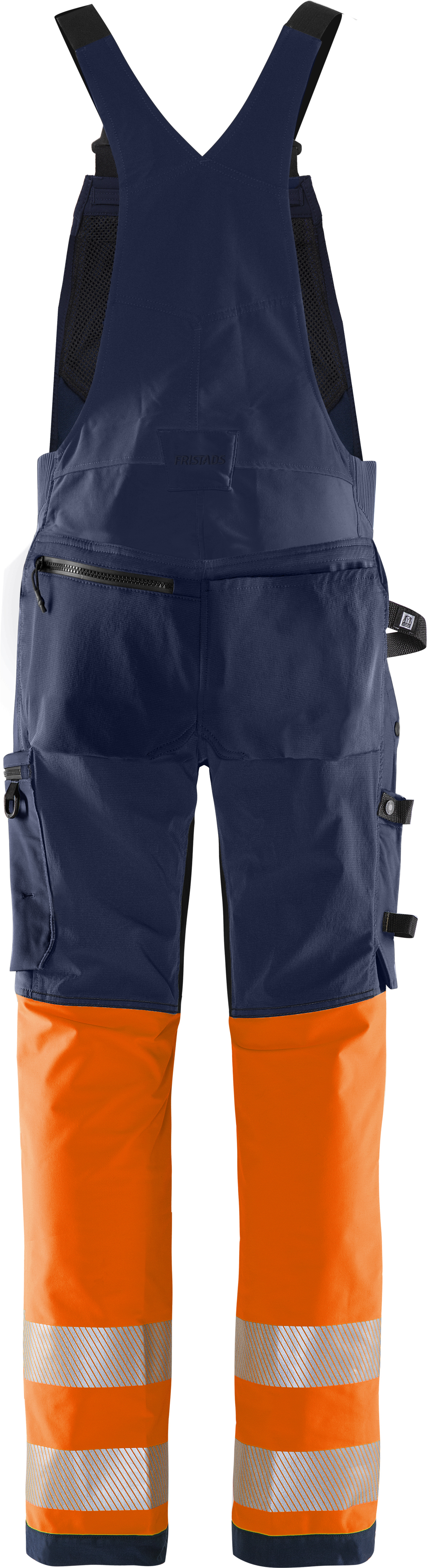 Nachhaltige High Vis Stretch Latzhose aus durchgehendem 4-Wege-Stretchmaterial mit Stretcheinsätzen am Bund, und Verstärkungen an exponierten Stellen. Hergestellt aus recycelten Materialien. Mit EPD (Environmental Product Declaration).