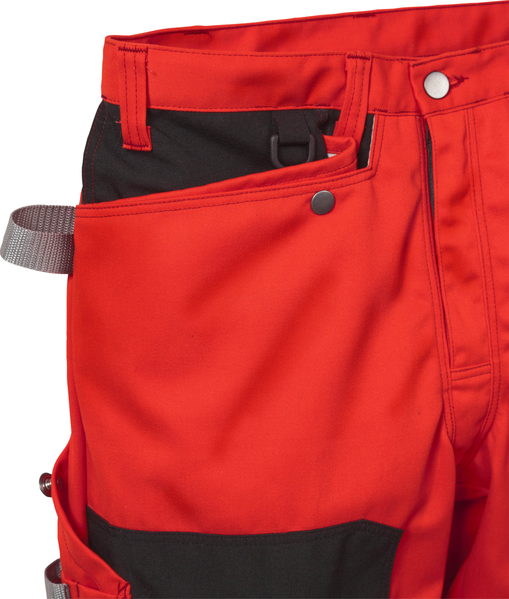 Wasserabweisend / Doppelt abgesteppte Reflexstreifen / 2 CORDURA®-verstärkte, einsteckbare, lose hängende Außentaschen - eine mit extra Tasche, die andere mit 3 kleinen Taschen und Werkzeugschlaufen / 2 Vordertaschen / D-Ring / Doppelt verstärkte Schrittnaht / 2 Gesäßtaschen - eine mit Patte und Klettverschluss / Beintasche mit Handytasche, D-Ring und ID-Kartenhalter / Hammerschlaufe / CORDURA®-verstärkte Zollstocktasche mit Werkzeugtasche sowie 2 Knöpfe und Schlaufen für 2 Arbeitsmesser / Verstärkte Oberschenkel in Kontrastfarbe / Ergonomisch geformte Knie / CORDURA®-verstärkte Knietaschen für höhenverstellbare Kniepolster / CORDURA®-verstärkte Beinabschlüsse / Geprüft und zugelassen gemäß EN ISO 20471 Klasse 2 und EN 14404 (in Kombination mit Kniepolster 124292) / Industriewäsche geeignet gemäß ISO 15797 / OEKO-TEX® zertifiziert.