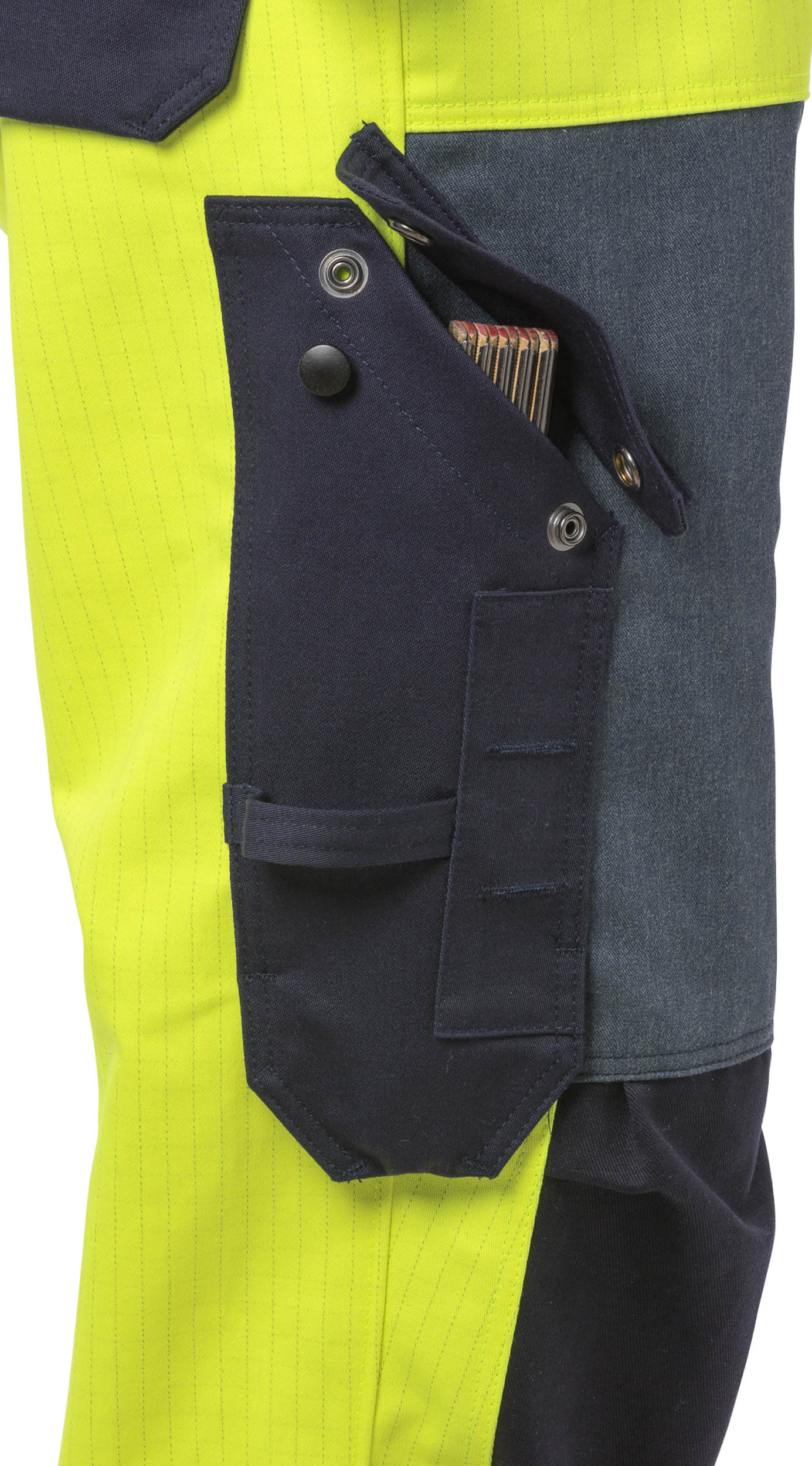 - CORDURA®-verstärkte Zollstocktasche mit Patte und verdecktem Druckknopfverschluss sowie Knopf und Schlaufe für ein Arbeitsmesser