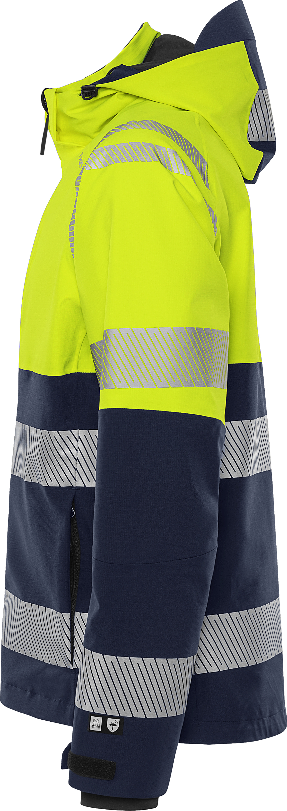 Teilweise recyceltes Material / Ripstop 4-Wege-Stretch-Material / Wasserdicht, winddicht und atmungsaktiv / Verschweißte Nähte / Abnehmbare und verstellbare Kapuze mit verstärktem Schirm / Fleece-gefütterter Kragen / Durchgehender wasserabweisender Frontreißverschluss mit Innenleiste / Brusttasche mit verdecktem, vertikalem Reißverschluss / Vordertaschen mit Reißverschluss / Innentasche mit Reißverschluss / Vorgeformte Ärmel / Verstellbarer Ärmelabschluss / Elastische Innenmanschette mit Daumengriff / Verstellbarer Kordelzug in der Taille / Verlängerter Rücken / Reißverschluss im Futter für den Übergang / Wassersäule 10, 000 mm / RET <15 / Geprüft nach EN ISO 20471 Klasse 1 und EN 343 Klasse 4/4 / Geprüft nach 5 Wäschen / OEKO-TEX® zertifiziert.