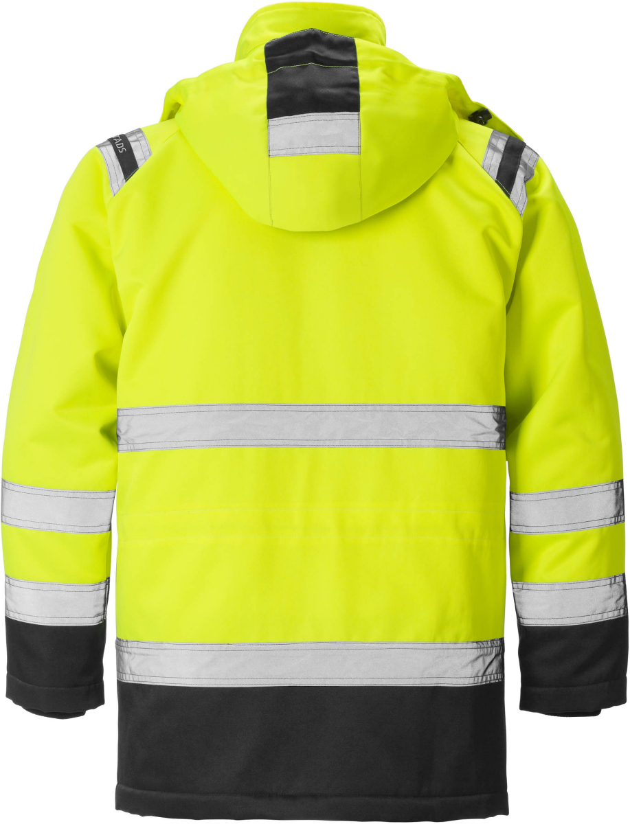Polydex, schmutz-, öl- und wasserabweisend / Vollständig gefüttert (Steppfutter) / Abnehmbare, verstellbare gefütterte Kapuze / Kragen mit Fleece-Futter / Über die Schulter führende Reflexstreifen / Verdeckter 2-Wege-Reißverschluss mit Druckknopfleiste bis zum oberen Kragenrand / Geräumige Brusttasche mit Patte und verdecktem Druckknopfverschluss, Ausweistasche, D-Ring und extra Tasche mit Reißverschluss / Brusttasche mit Reißverschluss / Kartentasche mit Handytasche (innen), von außen zugänglich / 2 Vordertaschen mit Patten und verdecktem Druckknopfverschluss / 2 Fleece-gefütterte Einschubtaschen / 2 Innentaschen mit Reißverschluss, Knopfloch für Mikrofon und Schlaufen / Verstellbare Taille / Reißverschluss im Futter ermöglicht Stickereien und Wärmetransfers / Elastische Ärmelinnenbündchen / Geprüft und zugelassen gemäß EN ISO 20471 Klasse 3 und EN 342 / Zugelassen nach 25 Wäschen / Industriewäsche geeignet gemäß ISO 15797 / OEKO-TEX® zertifziert.
