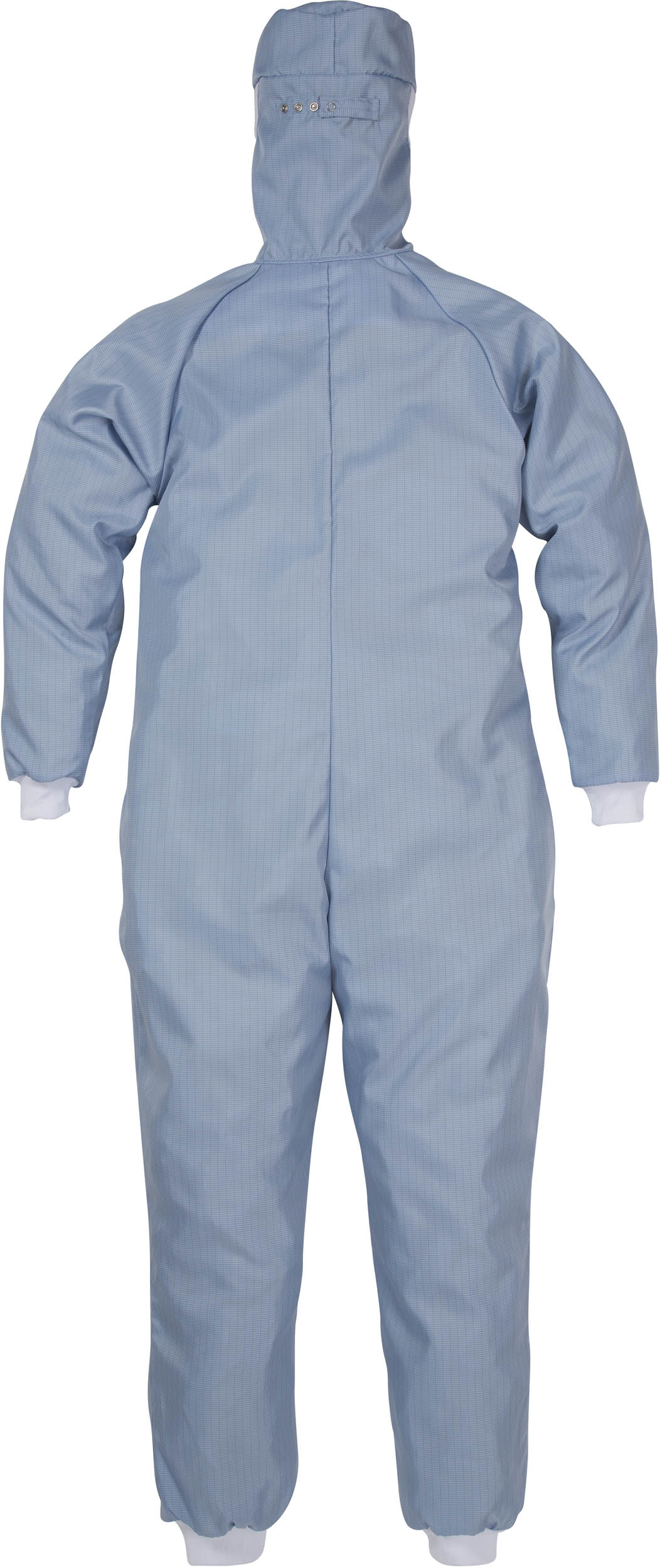 Verdeckter Reißverschluss / Verstellbare Kapuze mit Knöpfen / Elastische Bündchen an Arm- und Beinabschlüssen / Raglan-Ärmel / Geeignet für Reinräume der ISO Klasse 3.