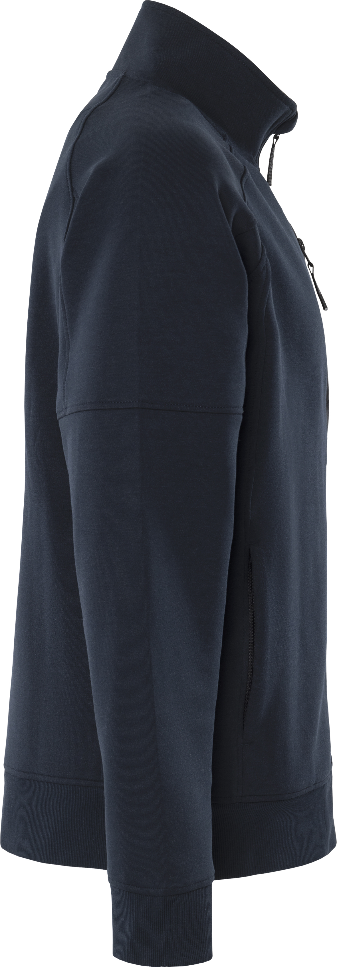 Double-Face Material / Durchgehender Frontreißverschluss / Brusttasche mit Reißverschluss / 2 Vordertaschen mit Reißverschluss / Rippstrickbündchen an Ärmeln und Saum / Kontrastnähte / OEKO-TEX® zertifiziert.