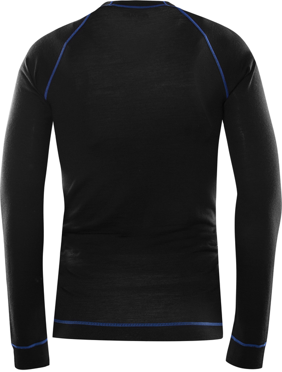 Isolierendes Mischgewebe aus Merinowolle und Polyester / Feuchtigkeitsabführend / Geruchsbindend / Rundhalsausschnitt / Flatlock-Nähte in Kontrastfarbe.