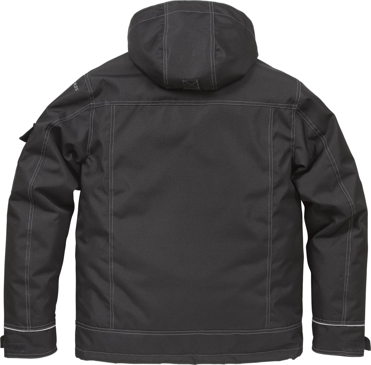 Polyurethan-beschichtet / Steppfutter / Verdeckter Reißverschluss bis zum oberen Kragenrand / Verstell- und abnehmbare, gefütterte Kapuze / 2 Brusttaschen mit Patte / 2 Vordertaschen mit Reißverschluss / Innentasche / Ärmeltasche mit Patte / Verstellbare Armabschlüsse / Reflektierende Paspelierung an den Ärmeln / Kordel an Unterkante / Bund mit gedrucktem Logo / Geprüft und zugelassen gemäß EN 342.