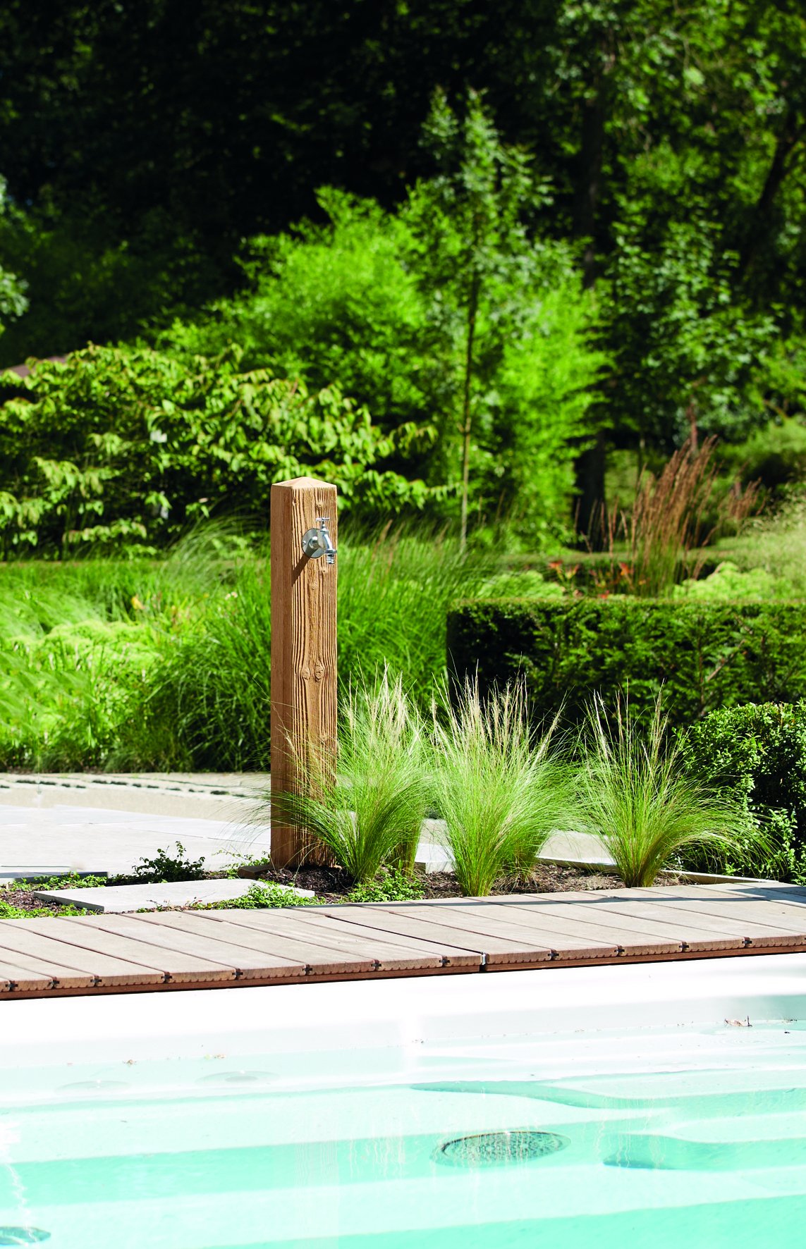 - Edle Wasserzapfsäule in Form eines naturbelassenen Holzpfahls