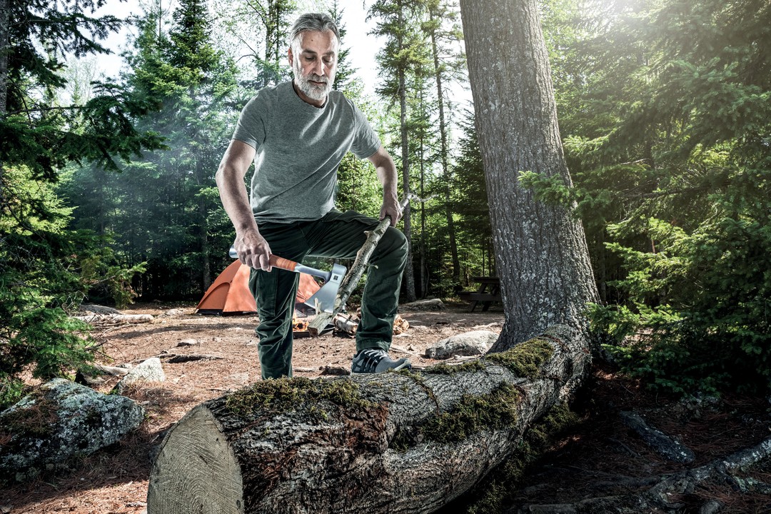 Der 70cm lange Hickory-Stiel ermöglicht es, den Vorschlaghammer im Stehen bequem zu greifen.