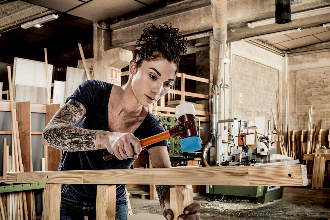 Das extra leichte Aluminium-Gehäuse mit integrierter Stielschutzhülse lässt den Anwender die Schlagkraft gut kontrollieren und selbst bestimmen. Somit können bruchempfindliche Materialien bearbeitet werden. Es macht den Schonhammer zudem zu einem sehr leichten Werkzeug, das einfach mitzuführen ist.