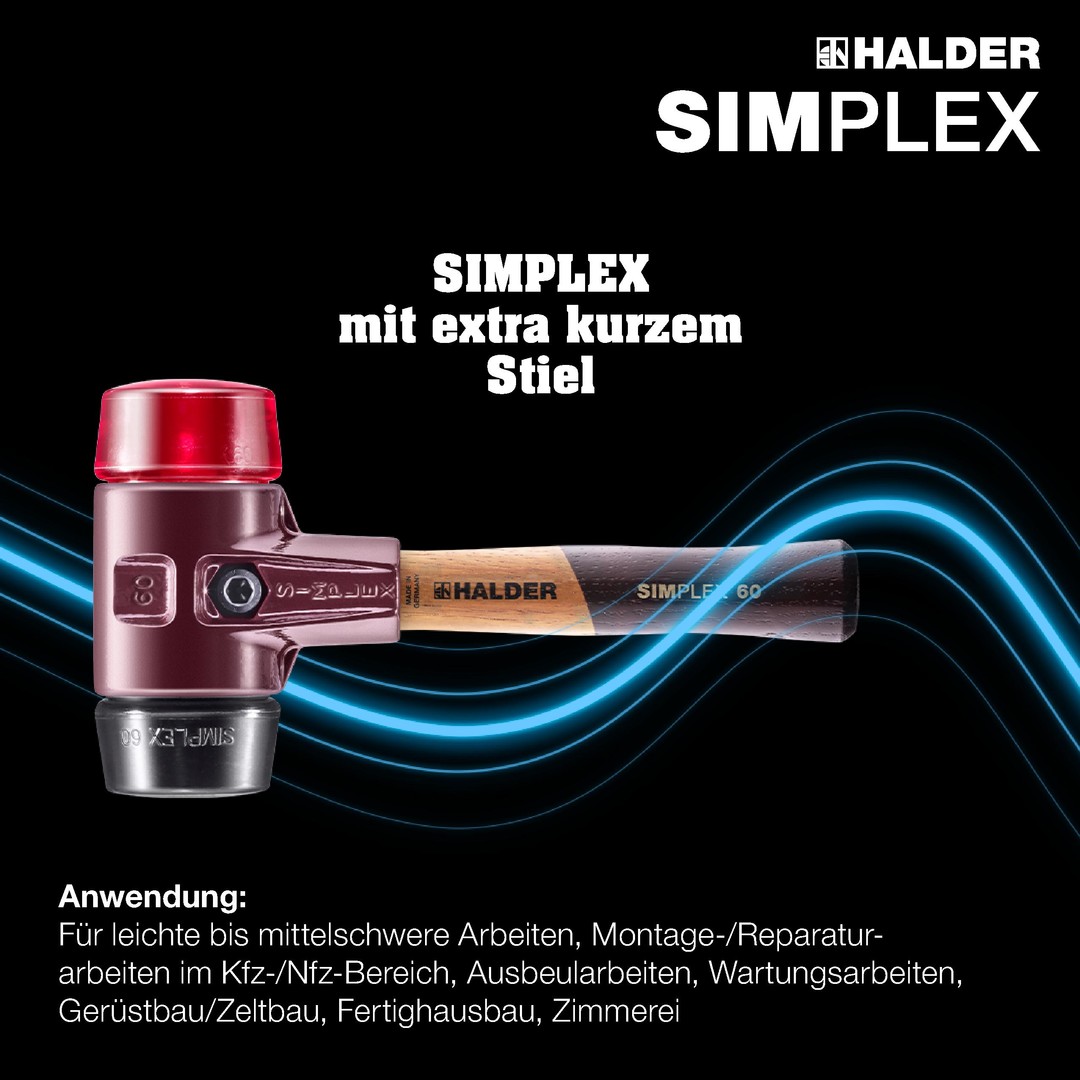 Der SIMPLEX-Schonhammer der Serie 3026 mit der Einsatzkombination Gummikomposition / Plastik ist eine der Topseller aus dem Hause Halder.