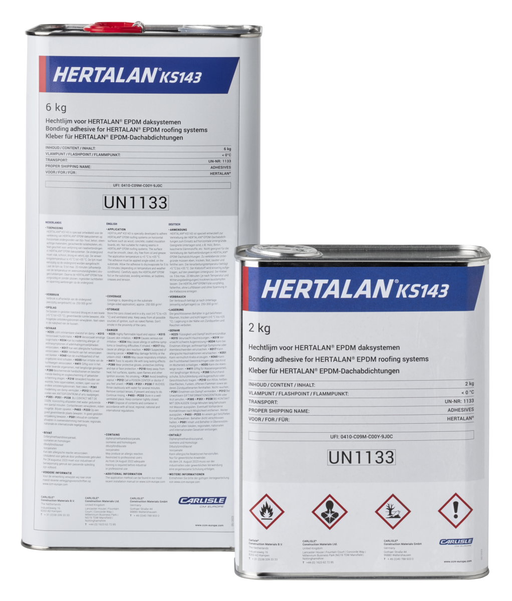HERTALAN® KS143 ist ein gebrauchsfertiger 1-Komponenten PU Kleber mit organischen Lösungsmittel, speziell entwickelt zur Verklebung der HERTALAN® EPDM Kautschukabdichtungen auf horizontale Untergründe von z.B. Schwer-/ Leichtbeton, nicht besandete Bitumen Dachbahnen, kaschierte Dämmstoffe, Holz, u.s.w.