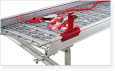 Mit einer Breite von 50 cm und einer Länge bis zu 610 cm, verfügt er über eine integrierte Fußleiste und einen Laufschuh zum Einhaken von Sicherheitsgeschirren.