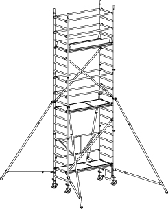 HYMER Fahrgerüst, klappbar mit Ausleger, Bühnenlänge 1,90 m, Rahmenteilbreite 0,80 m, Reichhöhe 6,75 m