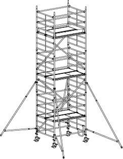 HYMER Fahrgerüst mit Ausleger, Bühnenlänge 1,90 m, Rahmenteilbreite 1,50 m, Reichhöhe 7,40 m