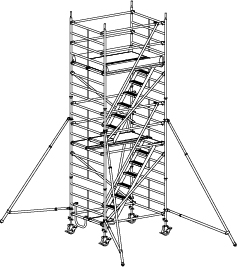 HYMER Treppen-Fahrgerüst mit Ausleger, Bühnenlänge 1,90 m, Rahmenteilbreite 1,50 m, Reichhöhe 6,40 m