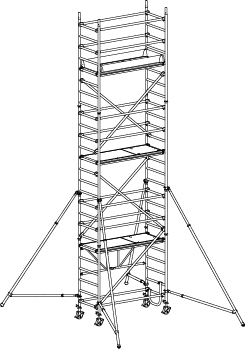 HYMER Fahrgerüst, klappbar mit Ausleger, Bühnenlänge 1,90 m, Rahmenteilbreite 0,80 m, Reichhöhe 7,75 m