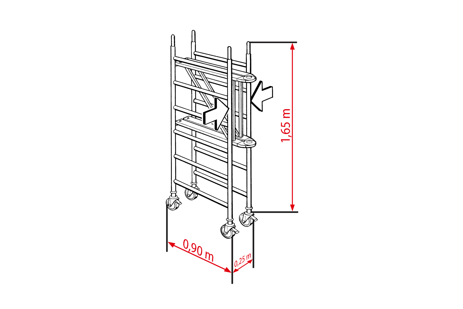 HYMER Fahrgerüst, klappbar, Bühnenlänge 1,90 m, Rahmenteilbreite 0,80 m, Reichhöhe 3,57 m