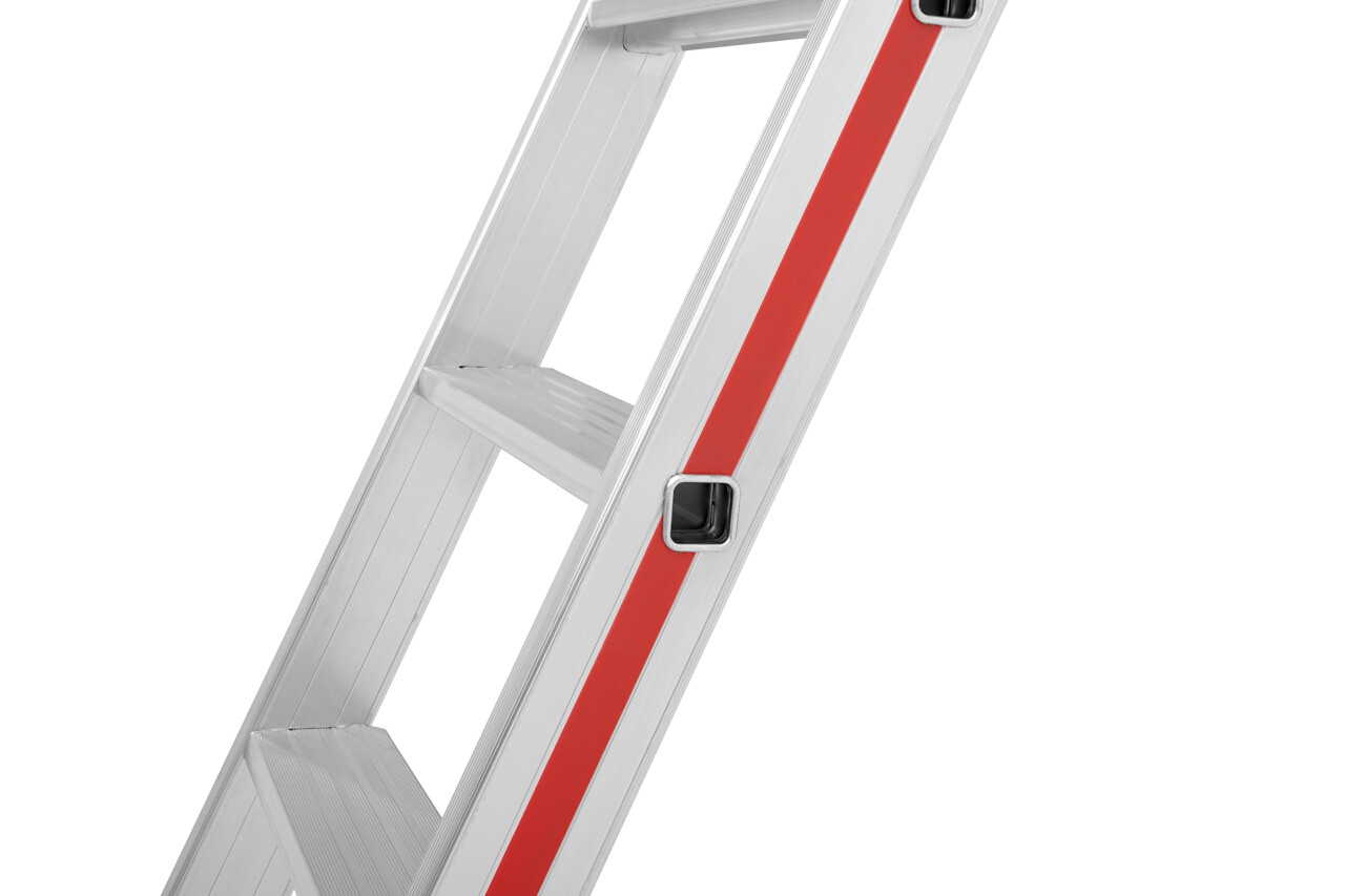 - Hohe Robustheit durch verwindungsstabile, verbördelte Holm-Stufen-Verbindung