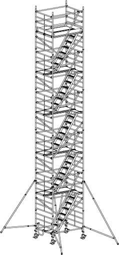 HYMER Treppen-Fahrgerüst mit Ausleger, Bühnenlänge 1,90 m, Rahmenteilbreite 1,50 m, Reichhöhe 12,40 m