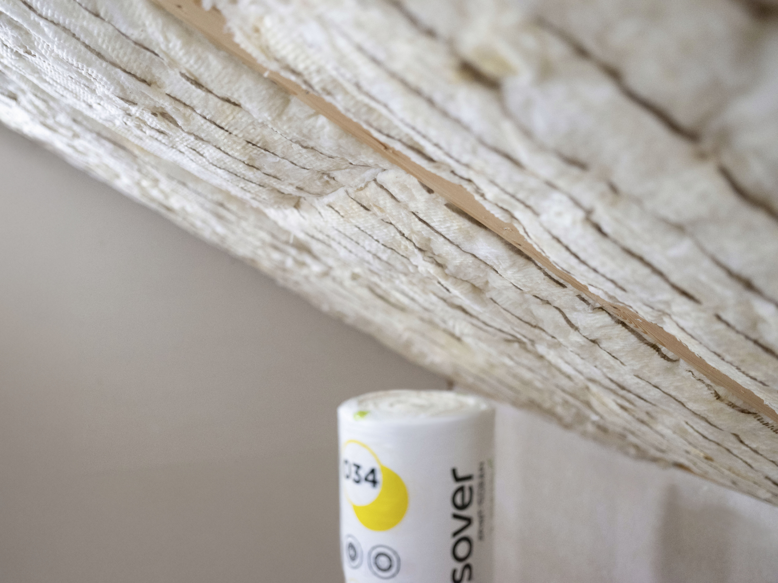Der ISOVER Integra ZKF 1-034 Zwischensparren-Klemmfilz aus der neuen Wolle Lanaé ist für die nahezu verschnittfreie Wärmedämmung zwischen Sparren- und Balkenlage in unbelüfteten Steildächern geeignet.