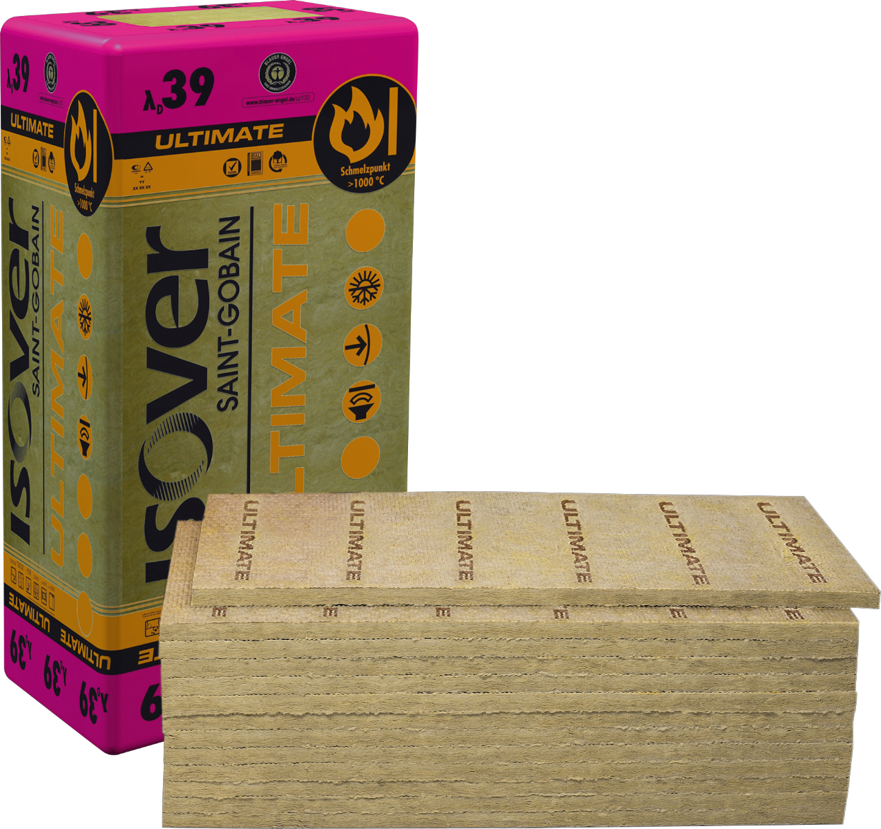 Die Hochleistungs-Trennwand-Platte aus ULTIMATE vereinigt die ausgezeichneten Dämm- und Verarbeitungseigenschaften von Glaswolle mit den Brandschutzeigenschaften von Steinwolle. Die nichtbrennbare Platte schützt Metall- und Holzständerwände sowie Vorsatzschalen mit Unterkonstruktion problemlos vor Brandgefahr dank Euroklasse A1 und Schmelzpunkt > 1.000 °C. Gleichzeitig leistet die Platte ausgezeichneten Schall- und Wärmeschutz.