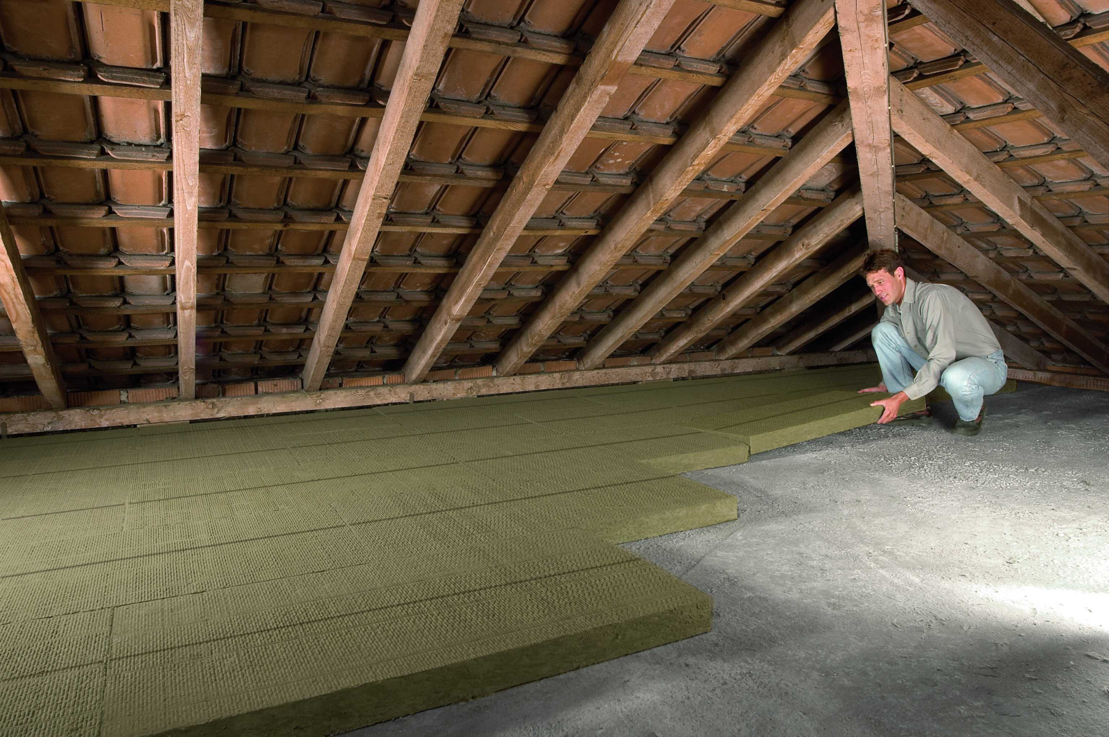 Zweischichtige Steinwolle-Platten mit hochdruckfester Deckschicht für die Wärmedämmung der obersten Geschossdecke