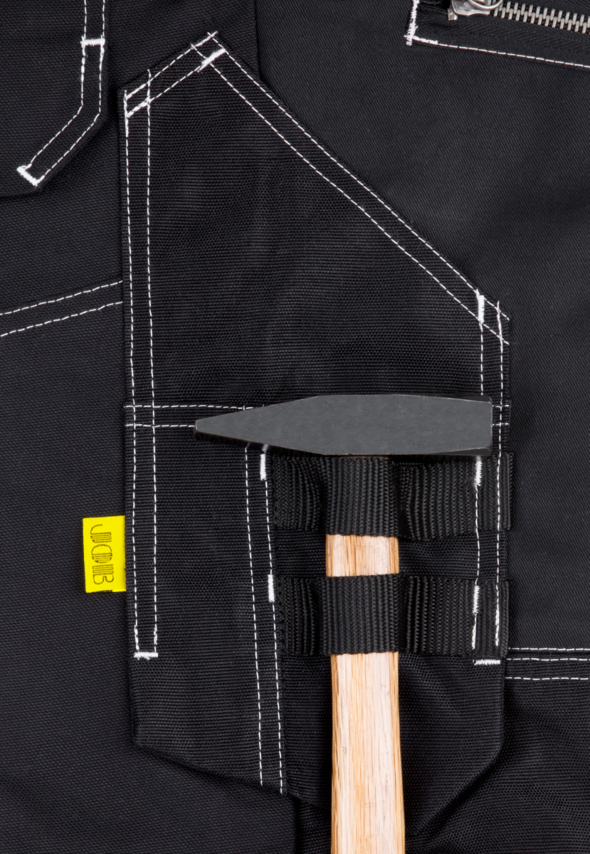 schwarz Kniepolstert. herausnehmb.Tasche orig.3M® Reflex weiße Kontrastnähte 65% PES/35% BW 300 g/m²