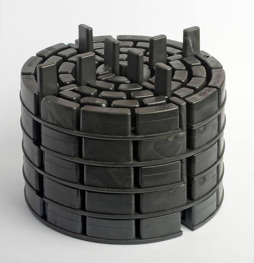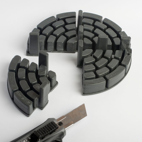 Das aus 100% recyceltem Weich-PVC hergestellte Lagersystem ermöglicht eine extrem einfache Verlegung von Platten.