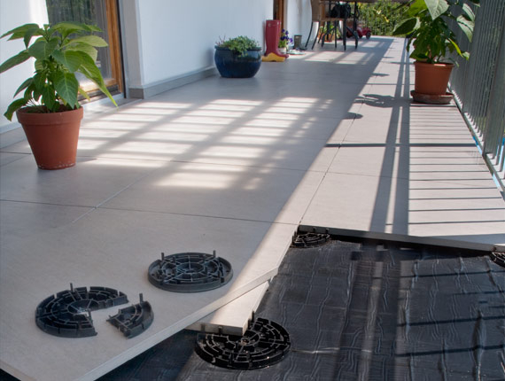 Das aus Polyamid und Glasfaser (ohne Weichmacher) bestehende Multilager ermöglicht die Verlegung von Platten auf weitläufigen, ebenen Flächen ohne starken Gefälleausgleich.