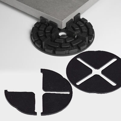 Mit ebenfalls teilbaren Ausgleichsscheiben kann die Auflage für die Platten erhöht werden.