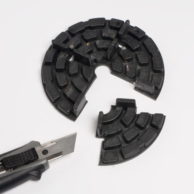 Mit ebenfalls teilbaren Ausgleichsscheiben kann die Auflage für die Platten erhöht werden.