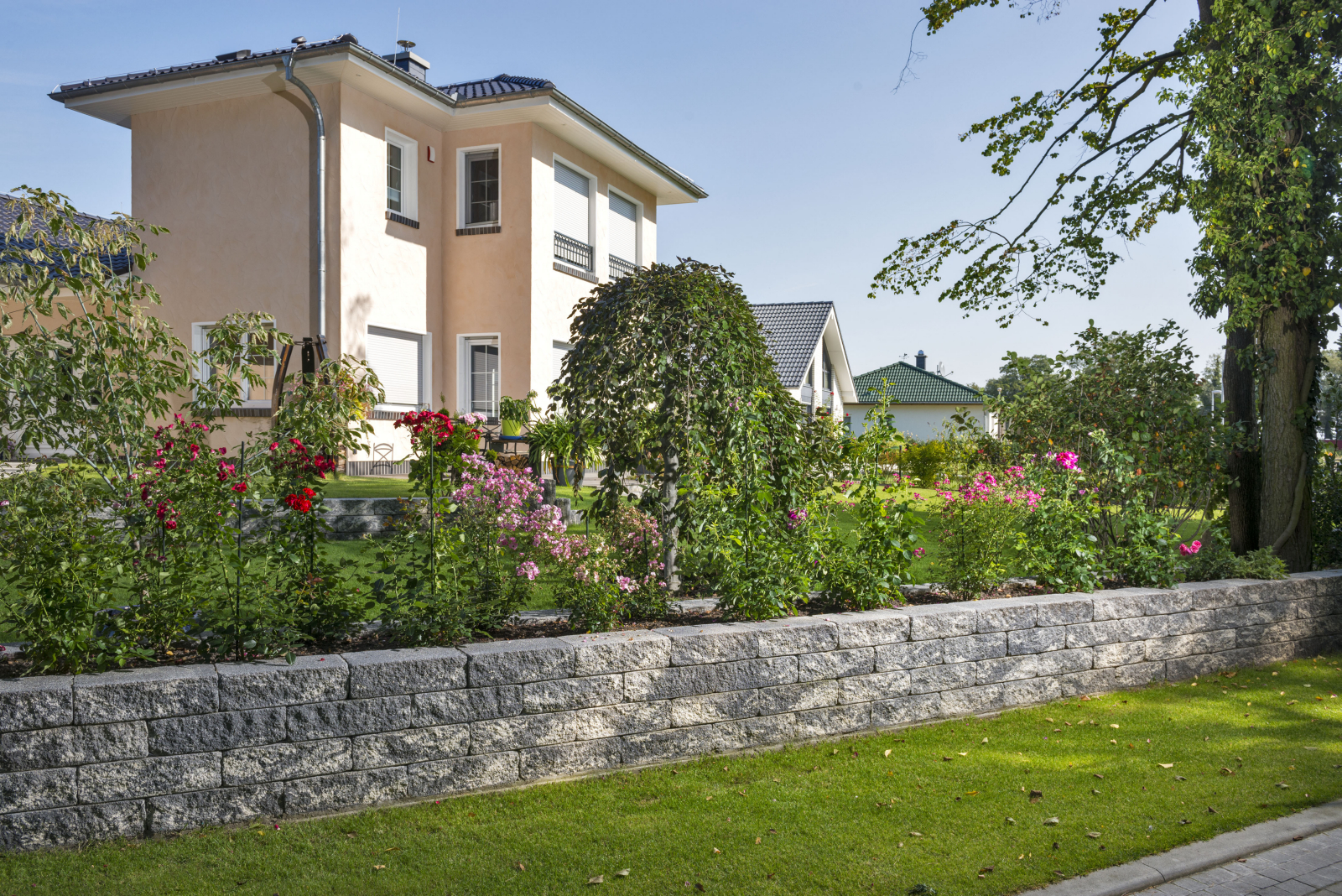 - Zweiseitig bruchraue Oberfläche für freistehenden Aufbau