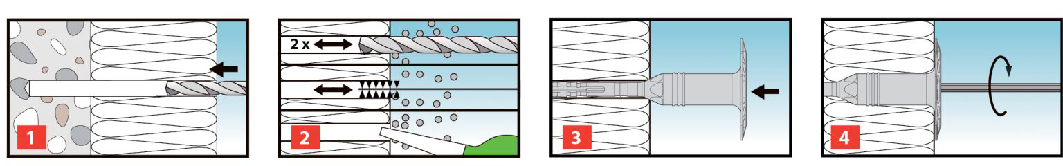 - Mit ETA-08/0314 als Mehrfachbefestigung zur Verankerung von verklebten Wärmedämmverbundsystemen nach EAD-040083-00-0404