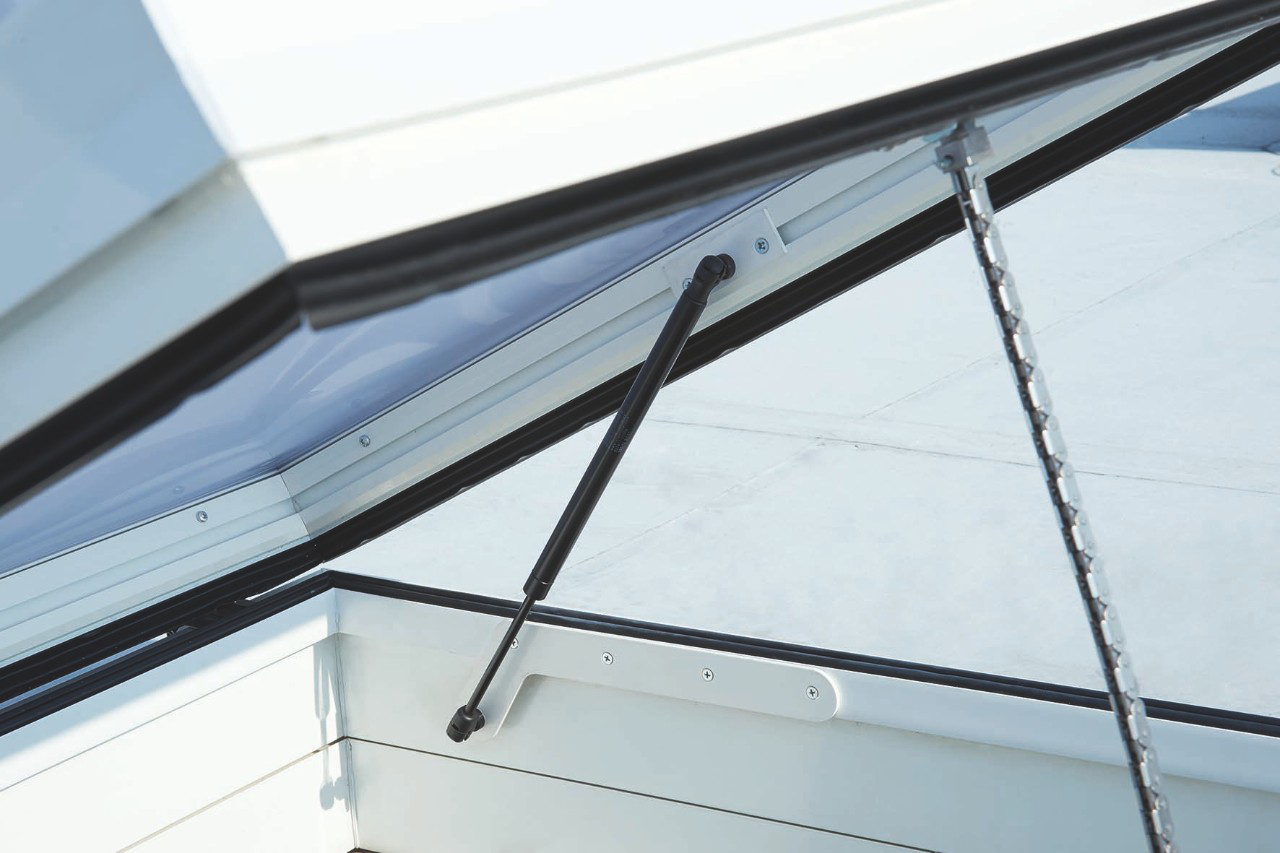 - Sichere Fixierung der Lichtkuppel in der geöffneten Position