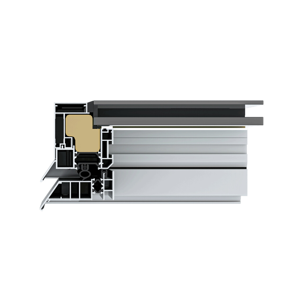- Flächenbündige Glaseinfassung mit integrierter Wetterfuge für ungehinderten Wasserablauf