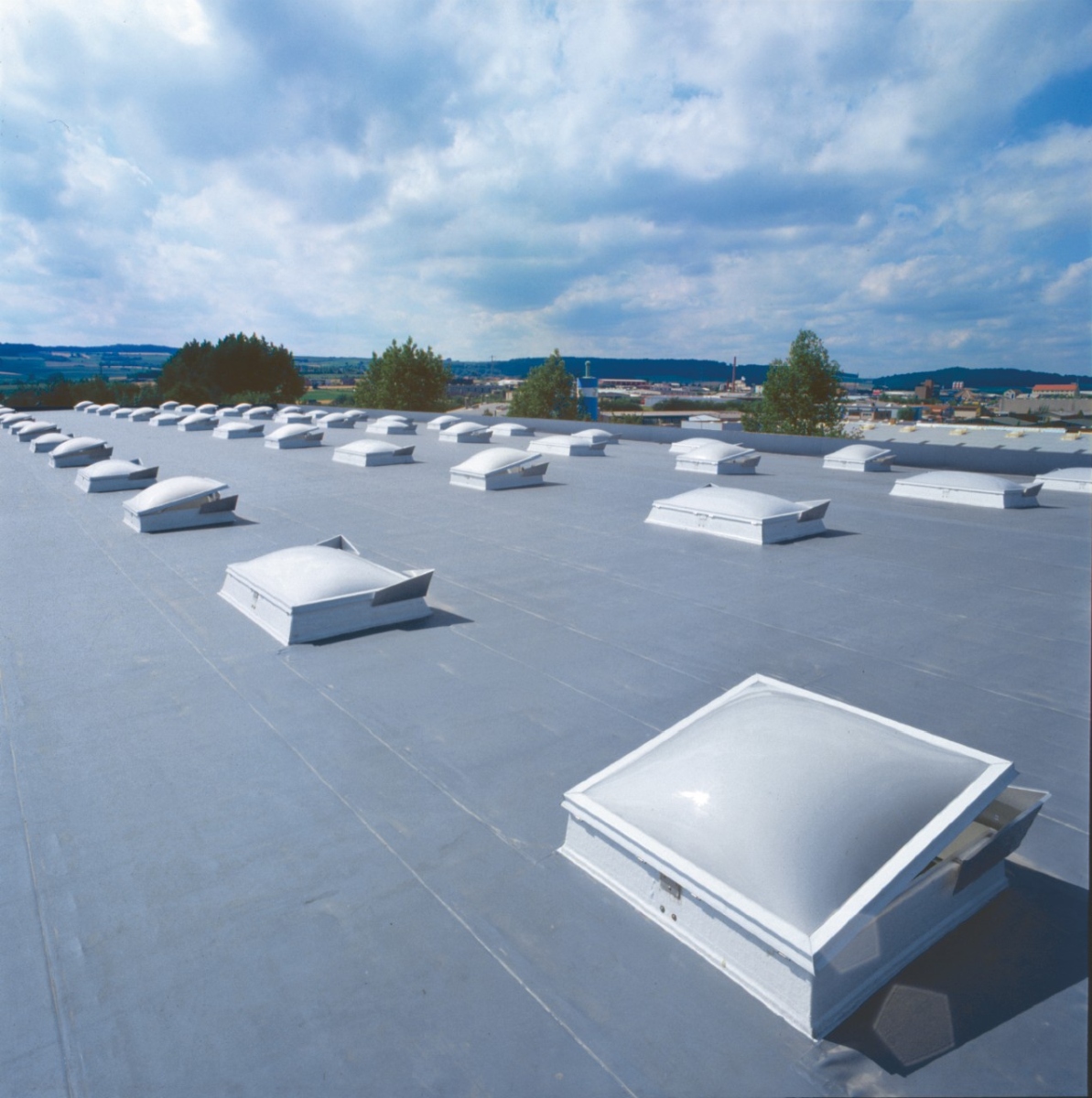 Zum Beispiel können die Kuppeln auch mit Antrieben ausgestattet werden, um sie bei Bedarf für die tägliche Belüftung und/oder den Rauch- und Wärmeabzug zu nutzen.