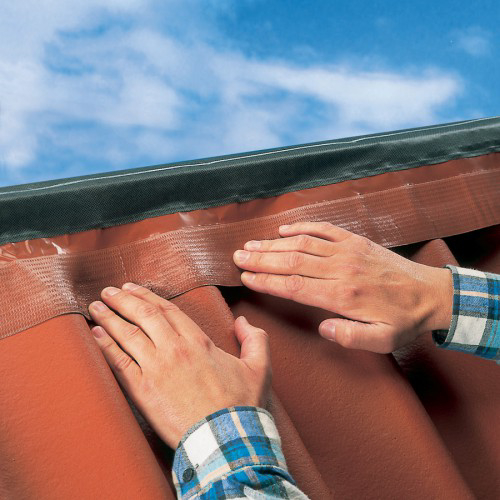 Der qualitätsstarke Verbund aus Aluminium und hochluftdurchlässigem Nadelvlies erlaubt einen schlagregen- und flugschneesicheren First- und Gratabschluss.